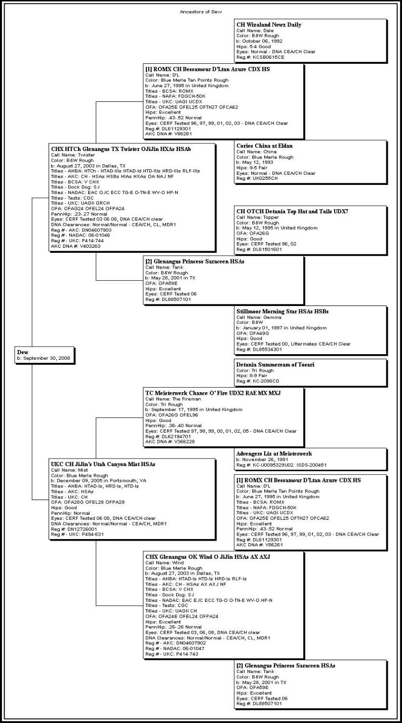 PEDIGREE OF DEW AND BLIZZARD AND WINTER