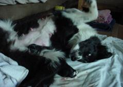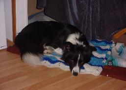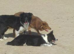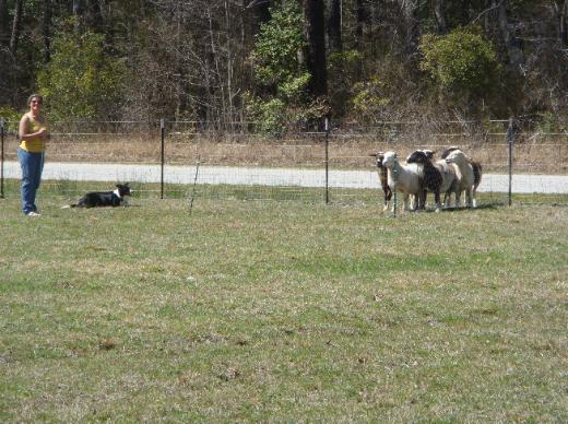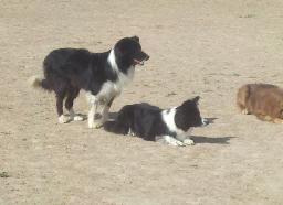 | Gale is a smaller female than her litter sister Mist, but she shows no less talent in any  way. She has strong herding instincts. She is intense and shows no fear of stock. She works cows as readily as sheep. She has a high activity level, but settles nicely in the house and loves to help hold your lap down when you are watching TV. When she competed for her first HSAs leg, she took first place in a class of 43 dogs. Then the next day took second place in a class of 35 dogs with a score of 98! A few weeks later she finished the title by taking a second place and then a first place the next day for a bumper leg. Her father is CH OTCH HC Meisterwerk Chance O'Fire UDX2 MX MXJ HXAs HIBs HIAd RAE, a beautiful tri from Utah. She is a joy to work with and live with and she has mothered many excellent get.  |