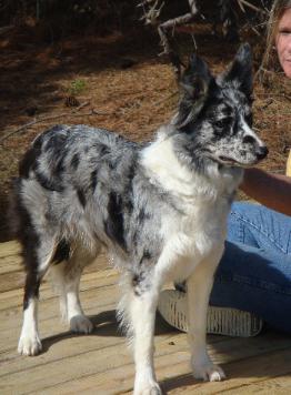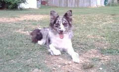 | DOB:  December 9, 2005 Height: 20" Weight: 45 pounds Color: Blue Merle, carries tan  |