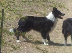 | DOB:  August 14, 2007 Height: 22" Weight: 50 pounds Color: Black and White Standing at stud to approved bitches  |