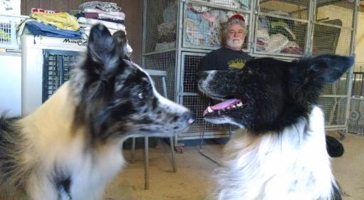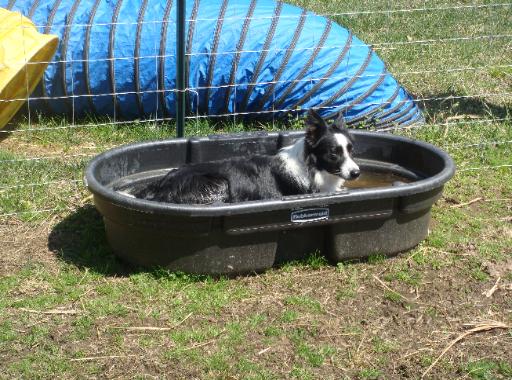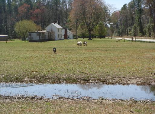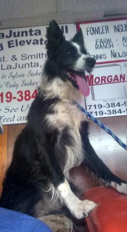 | Quake is a better farm dog than trial dog, but he does have a HIT and RHIT to his name  with limited showing. Quake was the only puppy in his litter with the decency to be born at home at a reasonable hour. I was called in to assist with the remainder of the litter, and although I was not present for his birth, he was my favorite in the litter due to his nice wide blaze and collar. Little did I know at that time he was to become a surprise gift! I am glad to have his intense work ethic!  |